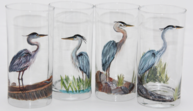 Purchase glasses separately or order an entire collection. Each painting is multi-layered to create a dual sided image so that the inside mirrors the outside. Glasses can be customized with color preferences and personalized with names. Glassware includes red or white wine glasses (stemmed or stemless), beer glasses, pint glasses, etc. All glasses are oven cured to make the paint more durable over time. Hand washing is recommended.
